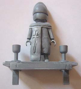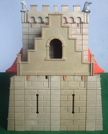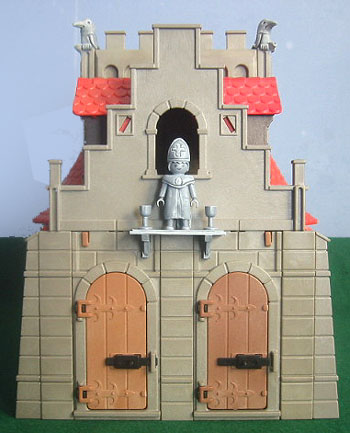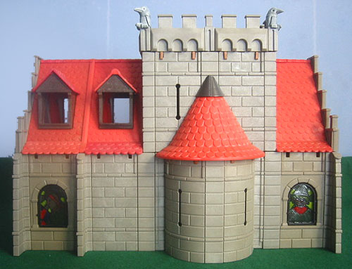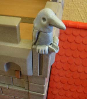 There are four hand made Gargoyles on the roof of the church. Each is made so that it can be removed and slotted into any set of Playmobil castle battlements.